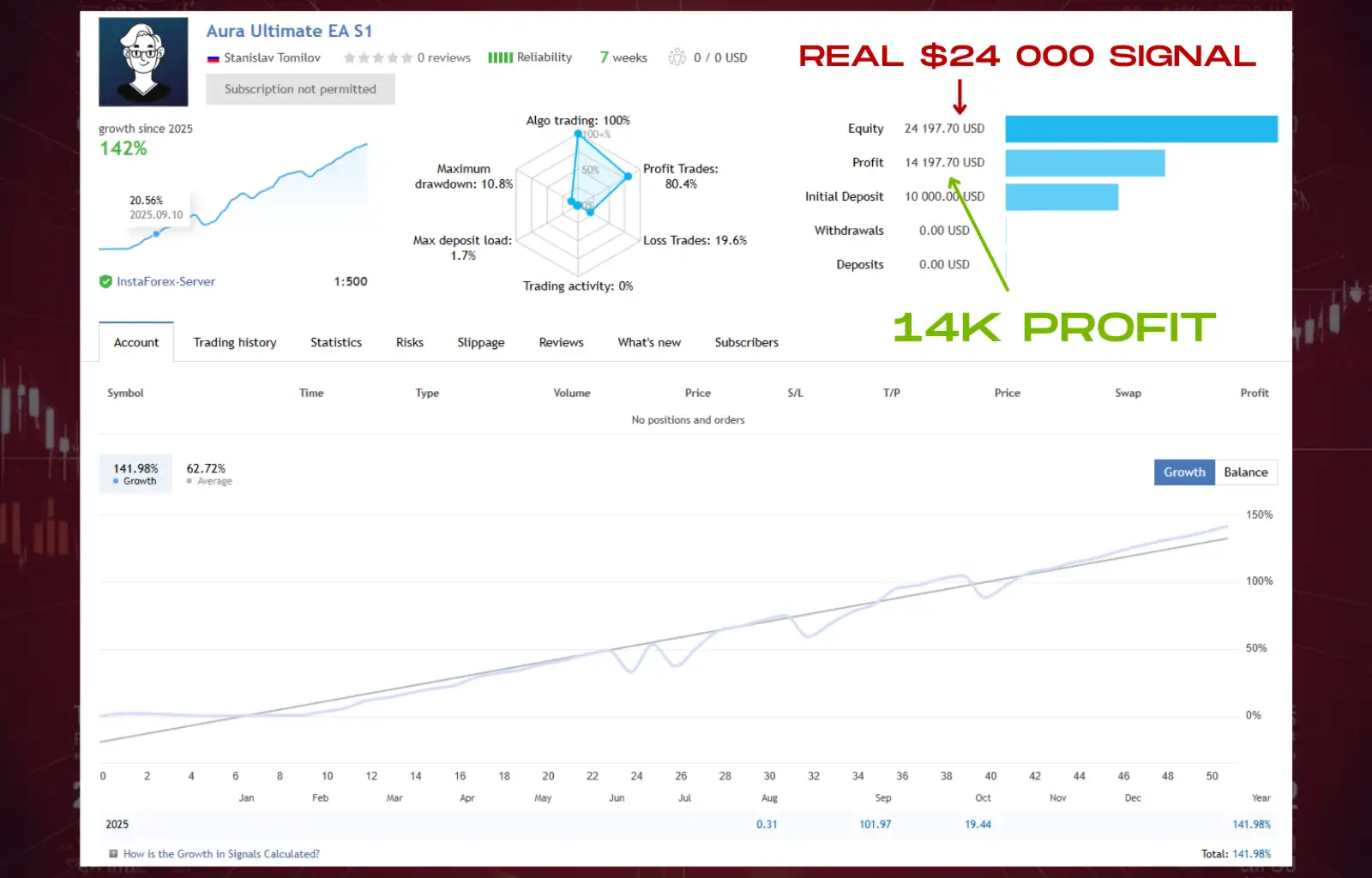 A stop loss is a normal and essential part of the strategy and does not indicate system failure. Performance should always be evaluated over a full trading month or longer, not based on short-term results. Periods without open trades are expected and reflect disciplined market filtering.