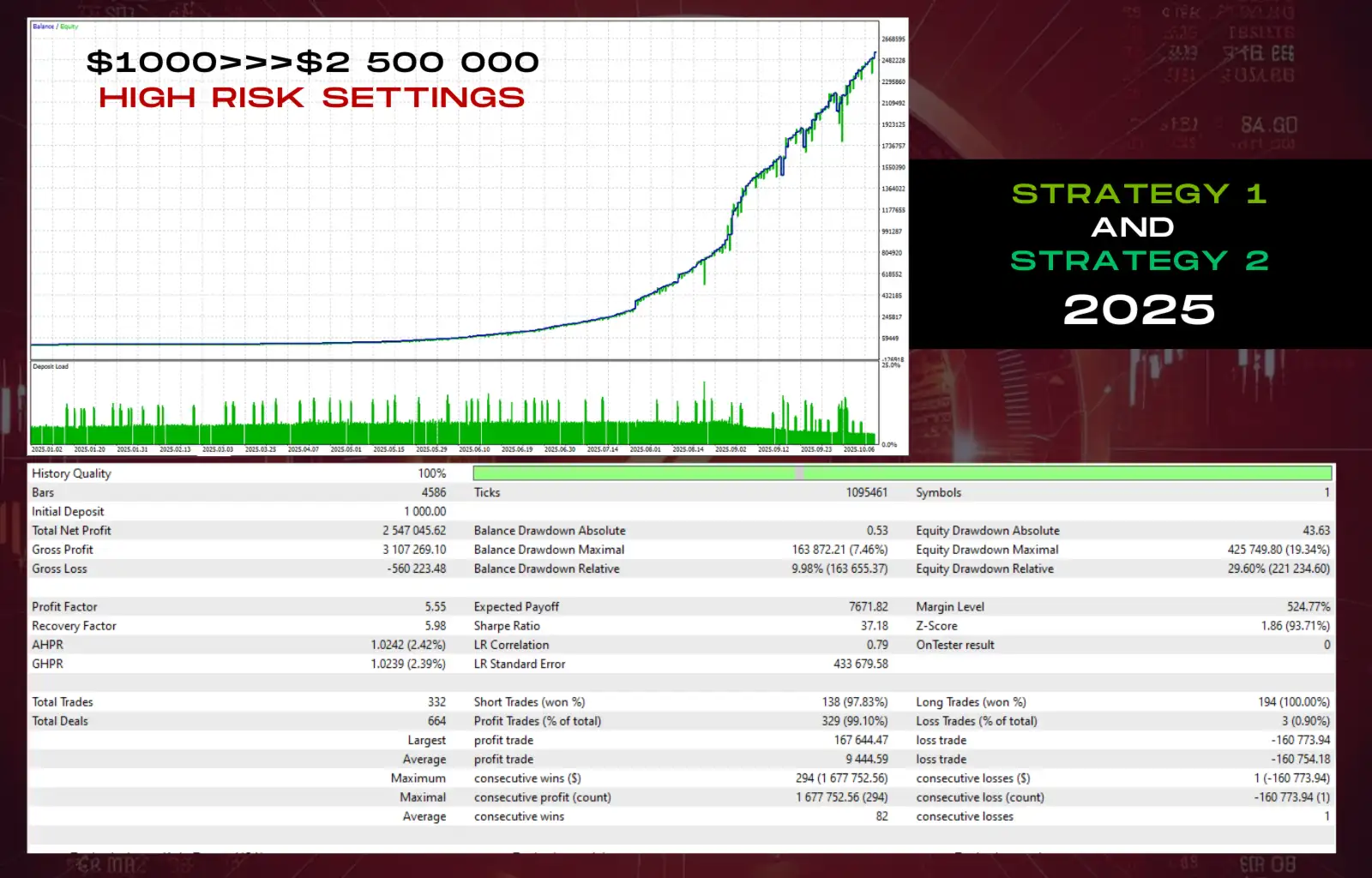 By combining multiple strategy cores within one neural framework, the EA increases adaptability and reduces dependency on a single market behavior, resulting in smoother equity curves and improved long-term consistency.