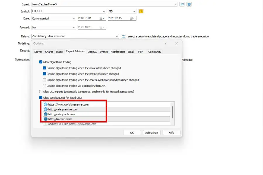 - Attach News Catcher Pro MT5 to one M5 chart (EURUSD recommended).