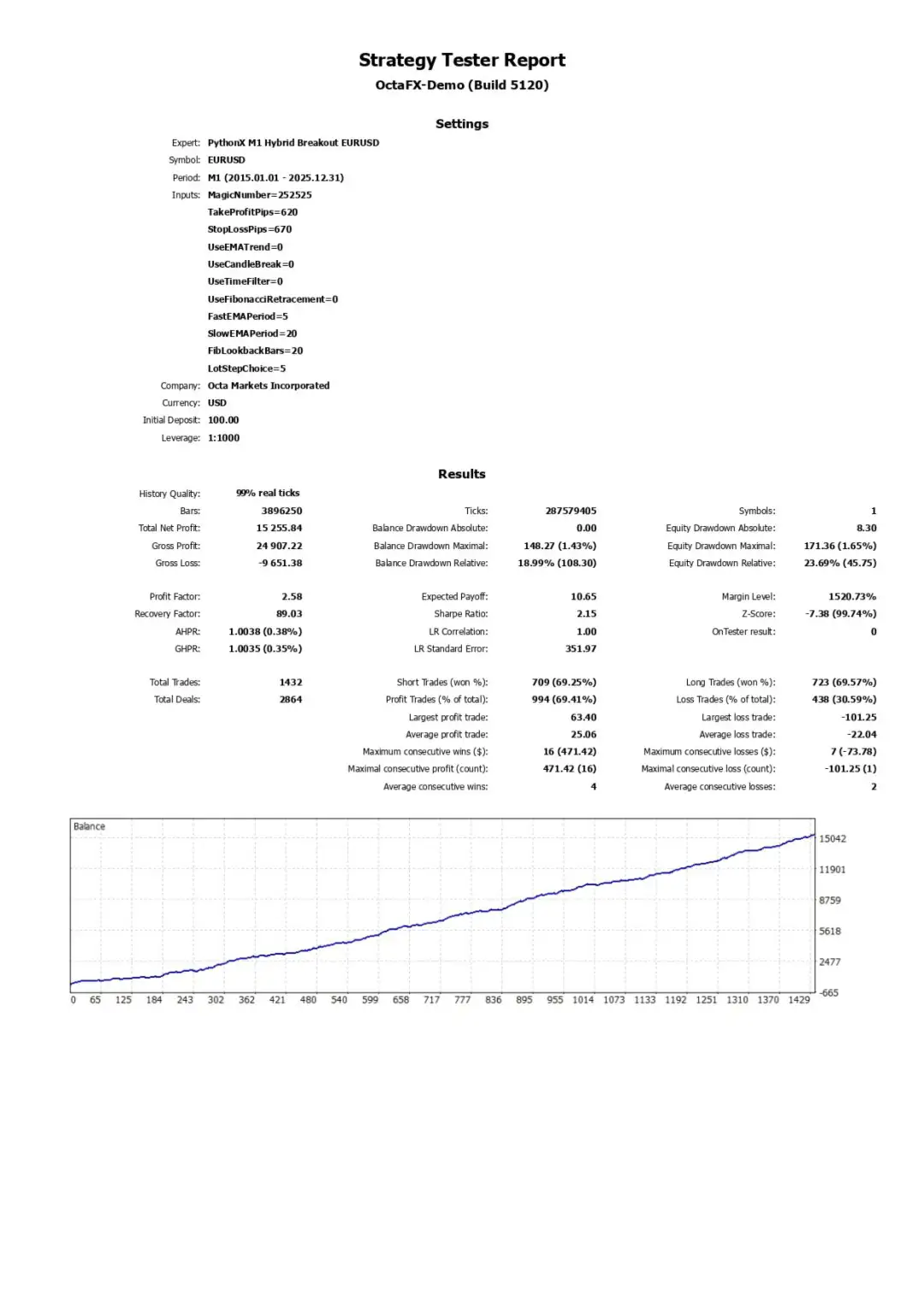 - Real Tick Data Backtesting: Tested using Tick Data Suite from 2015 to 2025