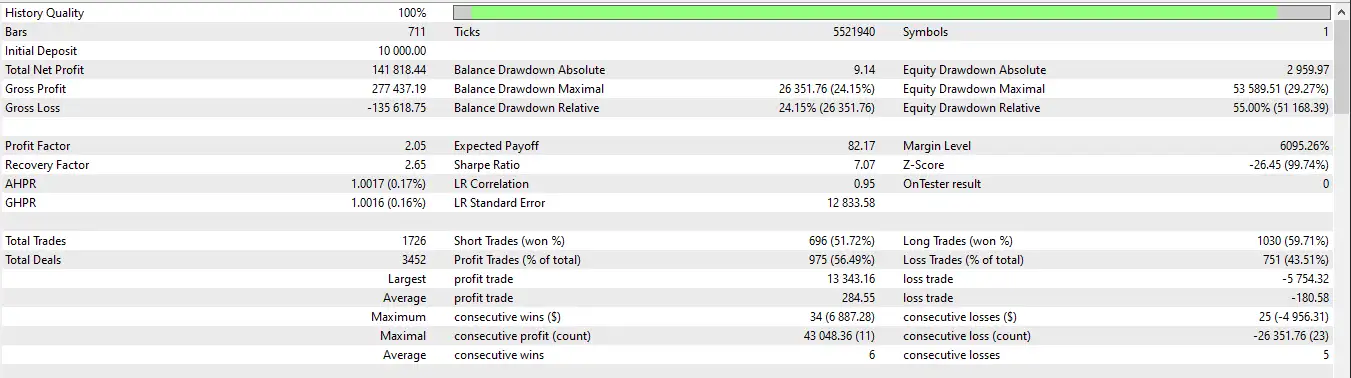 Solo Zening MT5 comes with default parameters optimized specifically for XAUUSD. This means users can run the EA immediately on gold without additional tuning.