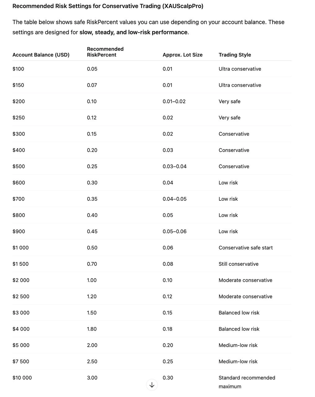 Trading Recommendations for XauScalpPro MT4