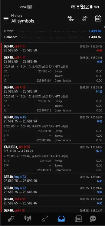 هوشمندانهتر و سریعتر معامله کنید با AI X TradeX HFT MT4 – ربات HFT حرفهای برای سودآوری در معاملات طلا و شاخصها.