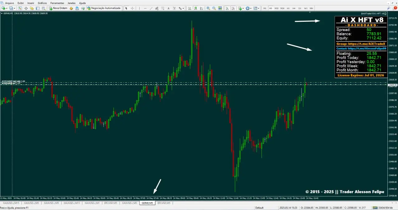 AI X TradeX HFT MT4 یک راهکار معاملاتی پرسرعت است که برای معاملهگران تازهکار و حرفهای طراحی شده است. با حداقل سرمایه، استراتژی اسکالپینگ بهینه و اتوماسیون کامل، این اکسپرت بهترین انتخاب برای معاملات طلا و شاخصها در پلتفرم MT4 است.