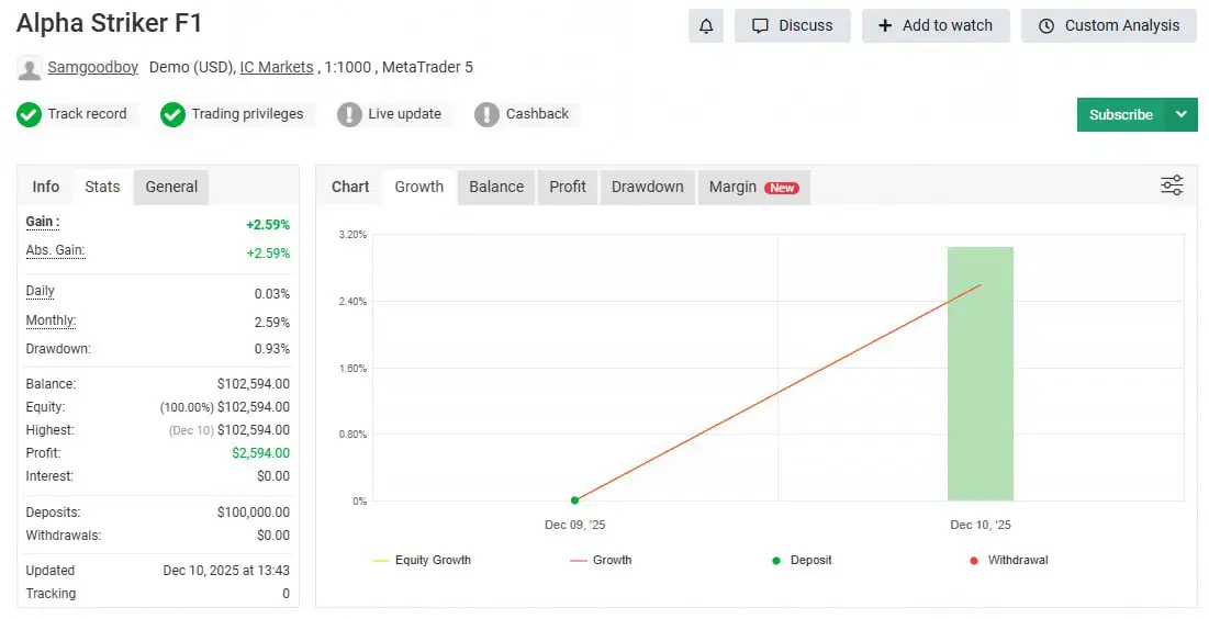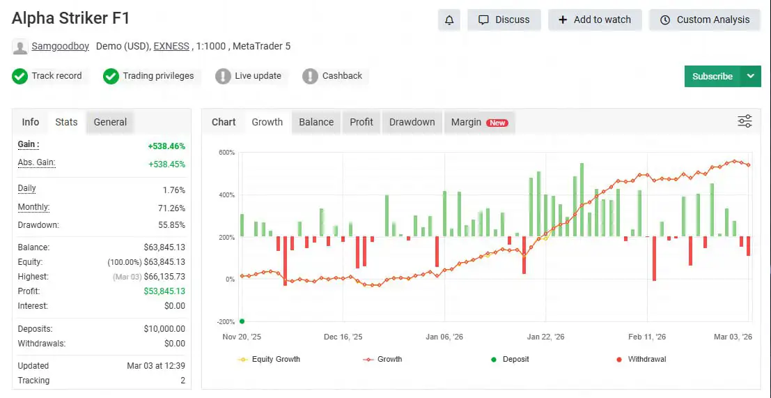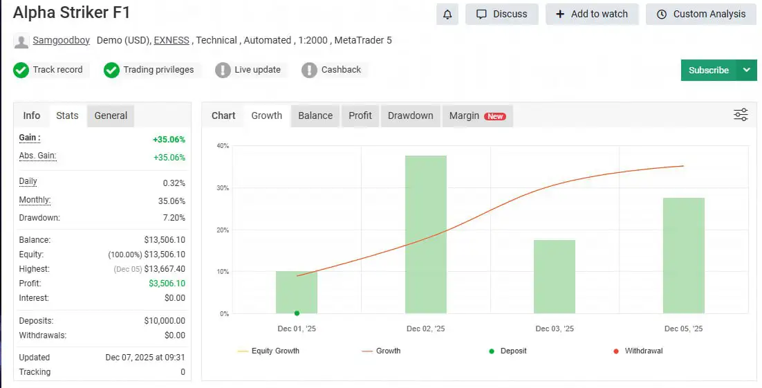 با Alpha Striker F1 MT5 با اطمینان معاملهگری خودکار را تجربه کنید.