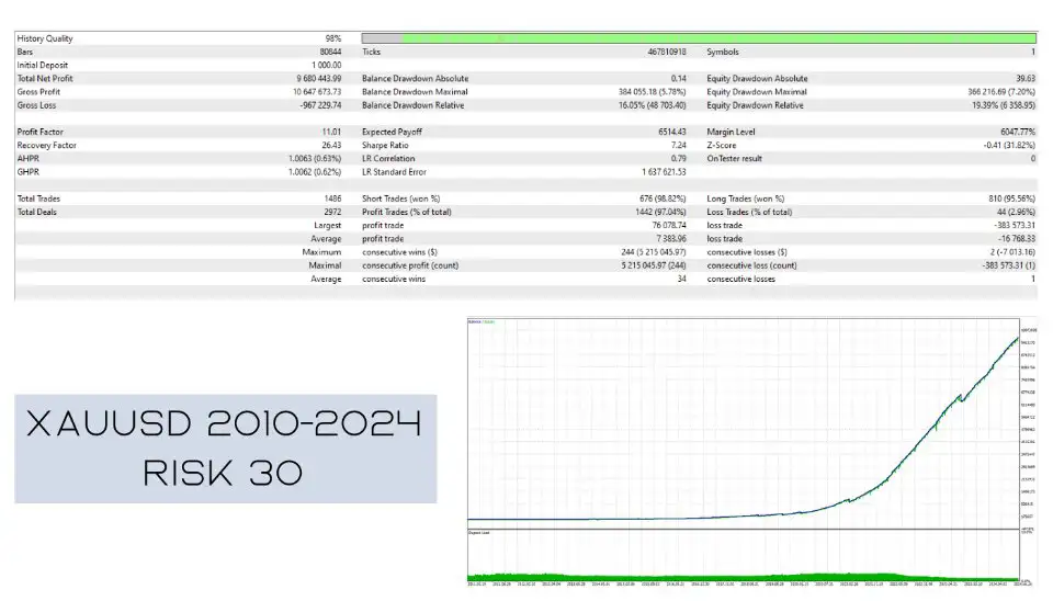این اکسپرت کاملاً خودکار، بهطور ویژه برای معاملات XAUUSD (طلا) طراحی شده است اما در سایر جفتارزها نیز عملکرد قابل توجهی دارد. از سال 1999 تا 2023، Aura Neuron MT5 پایداری و ثبات چشمگیری را در شرایط مختلف بازار نشان داده است؛ بدون استفاده از روشهای پرریسکی مانند مارتینگل، گرید یا اسکالپینگ.