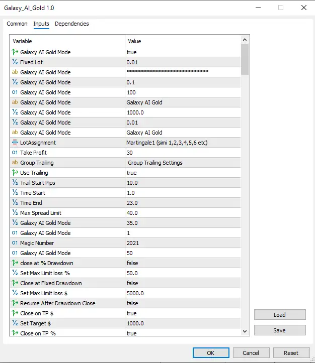 ویژگیهای کلیدی Galaxy AI Gold MT5