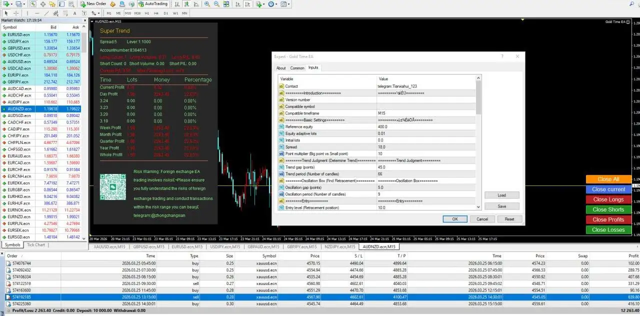 Gold Time EA MT4 برای بروکرهایی با اجرای سریع و پایدار مانند ICMarkets بهینهسازی شده است تا پردازش دقیق سفارشات تضمین شود.