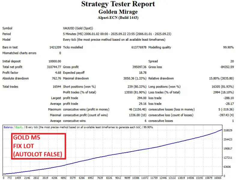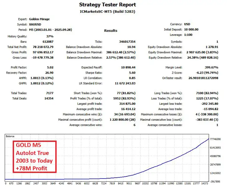 Golden Mirage MT4 یک راهکار شفاف، حرفهای و قابل اعتماد برای معامله خودکار طلا ارائه میدهد. بدون استفاده از شعارهای تبلیغاتی اغراقآمیز یا ادعاهای پیچیده هوش مصنوعی، این ربات بر آنچه واقعاً مهم است تمرکز دارد: منطق تستشده، ریسک کنترلشده و اجرای پایدار.