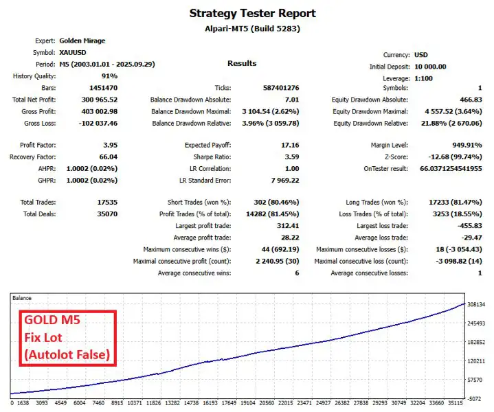 Golden Mirage MT4 – معامله خودکار مطمئن طلا برای XAUUSD