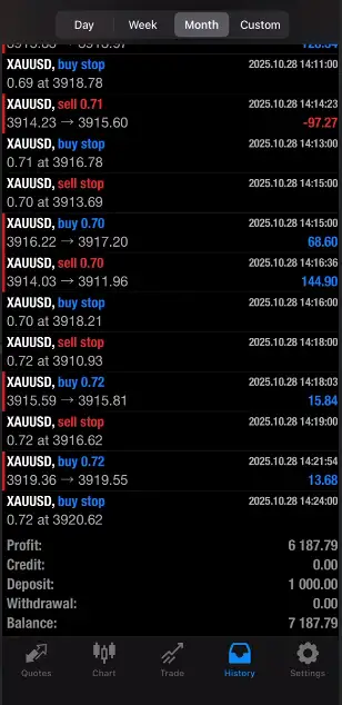 ورود و خروج آنی برای شکار حرکات کوچک اما مکرر قیمت در XAUUSD.