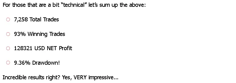 با دقت 93٪ (در صورت استفاده از مدیریت سرمایه صحیح)، این اکسپرت به معاملهگران در بازار رقابتی فارکس یک مزیت واقعی میدهد.