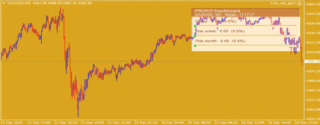 TOK M5 Bot MT4 یک ربات معاملاتی خودکار در سطح حرفهای است که بهطور اختصاصی برای معامله XAUUSD (طلا) در تایمفریم M5 طراحی شده است. این اکسپرت برای معاملهگرانی ساخته شده که به ثبات، دقت و کنترل سختگیرانه ریسک اهمیت میدهند و به دنبال اسکالپ طلا بدون استفاده از روشهای پرریسک هستند.