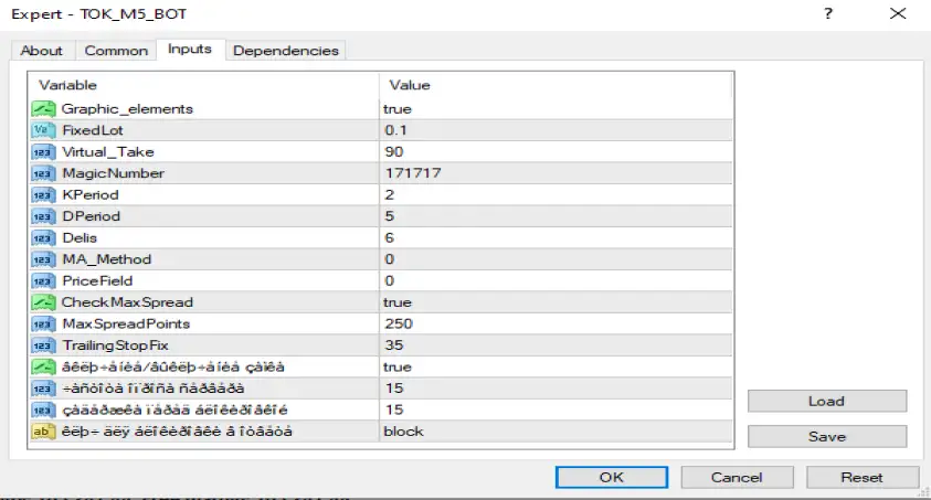 TOK M5 Bot MT4 بهصورت دقیق برای شرایط زیر بهینه شده است:
