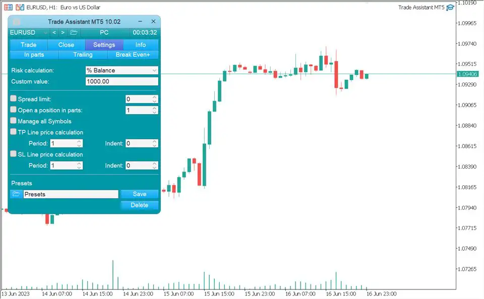 Trade Assistant MT5 بهراحتی نصب میشود و شامل موارد زیر است: