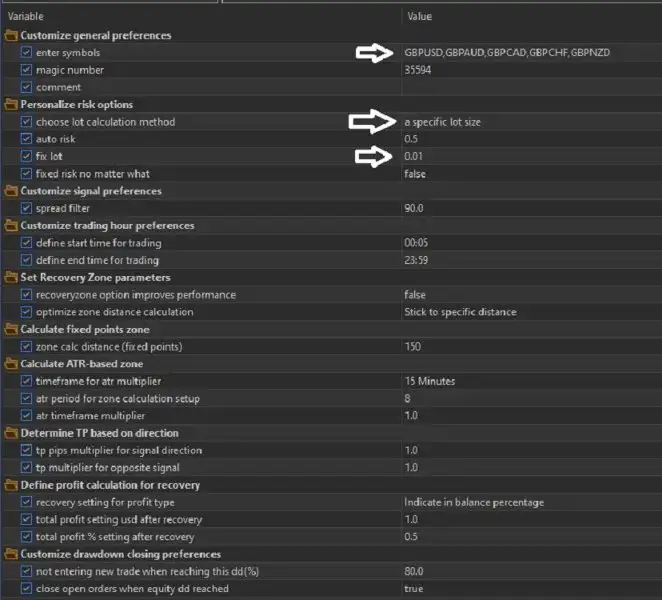 این اکسپرت تنها روی یک چارت اجرا میشود اما در پسزمینه چند جفتارز مبتنی بر GBP را مدیریت میکند. کافی است آن را روی جفتارز GBPUSD با تایمفریم H1 فعال کنید و بقیه کار را به سیستم بسپارید.