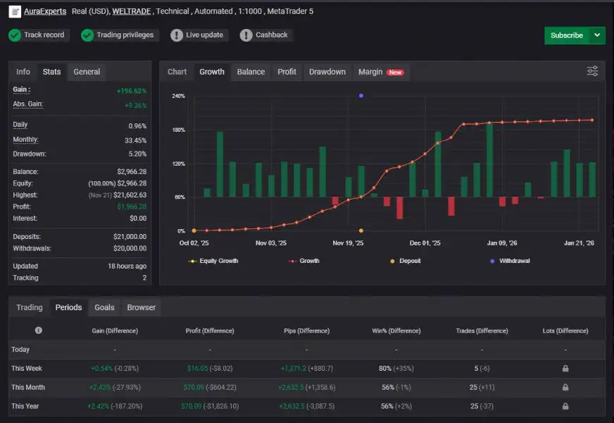 عملکرد گذشته تضمینی برای نتایج آینده نیست. هیچ سیستم معاملاتی بدون ریسک نیست. بکتستها صرفاً جهت نمایش هستند. پیش از استفاده در حساب واقعی، مدیریت سرمایه مناسب را رعایت کرده و ابتدا در حساب دمو تست کنید.