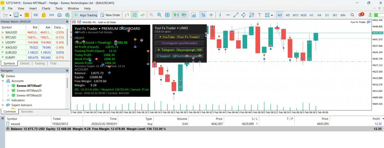 Yuvi FX Trader EA MT5 یک راهکار متمرکز و کارآمد برای معاملهگران طلا در پلتفرم MetaTrader 5 است. با اجرای معاملات در تایمفریم M1 و تمرکز اختصاصی روی XAUUSD، این اکسپرت امکان حضور در بازار طلا را بدون نیاز به نظارت دائمی فراهم میکند.